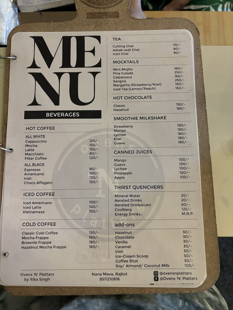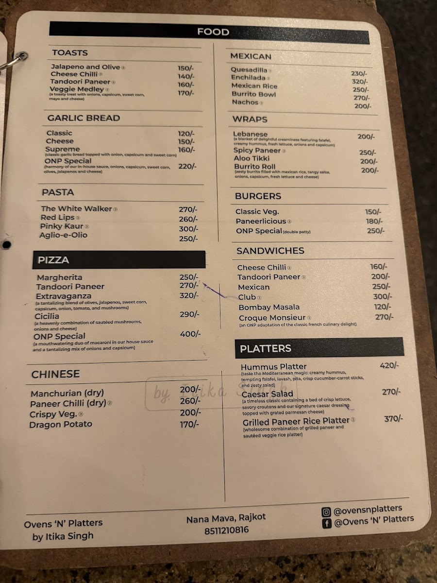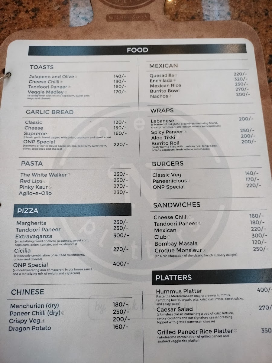 The menu at ovens ‘N’ platters offers a variety of options across different categories, suitable for casual dining, coffee breaks, and light meals. Visitors can find an assortment of wraps, including Lebanese, Spicy Paneer, Aloo Tikki, and Burrito Roll, providing a range of handheld savory choices.