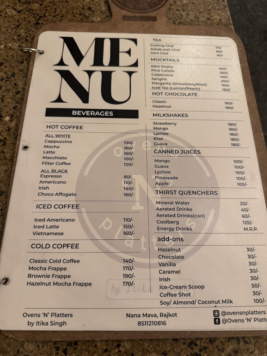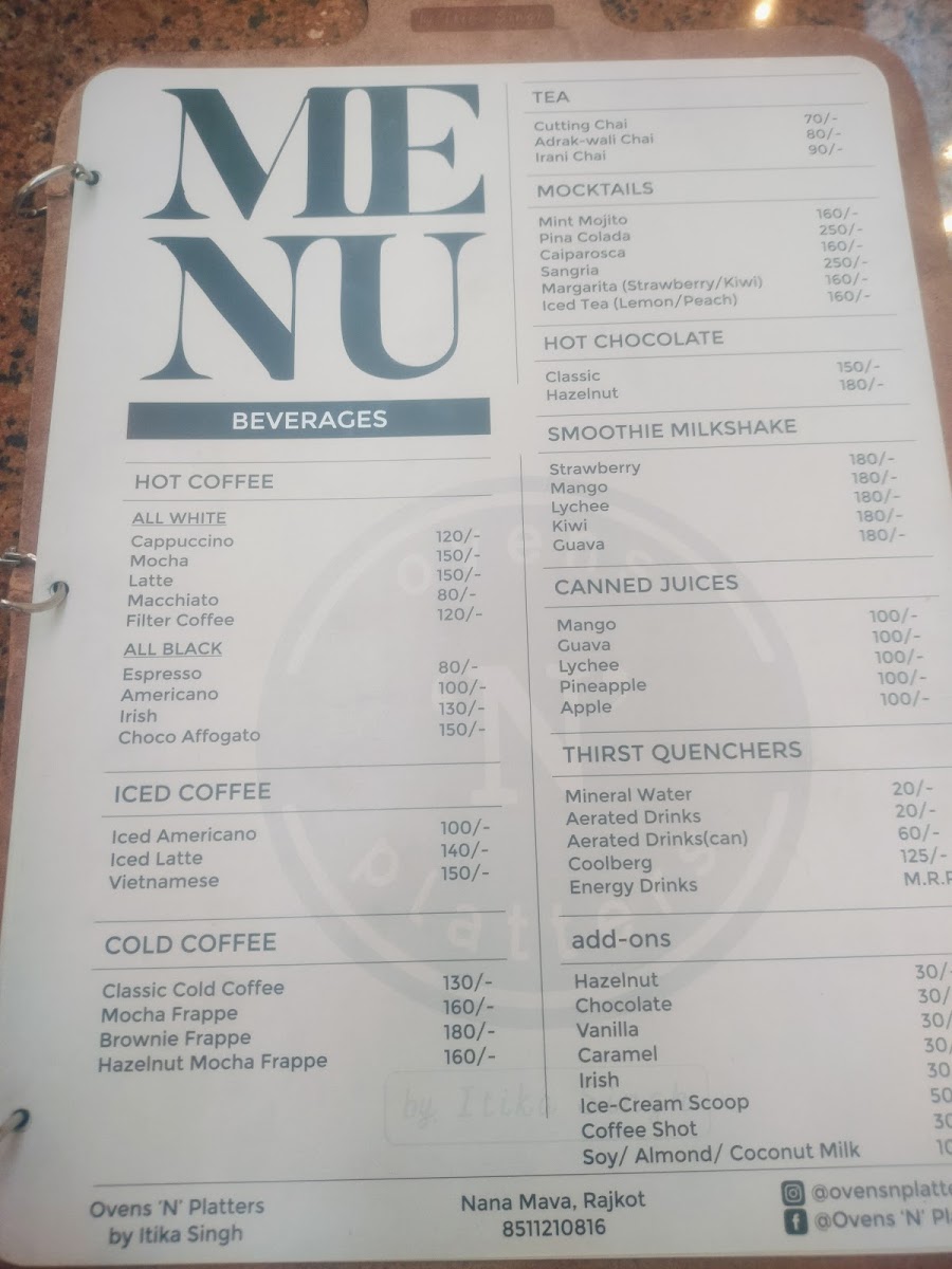 ovens ‘N’ platters Menu